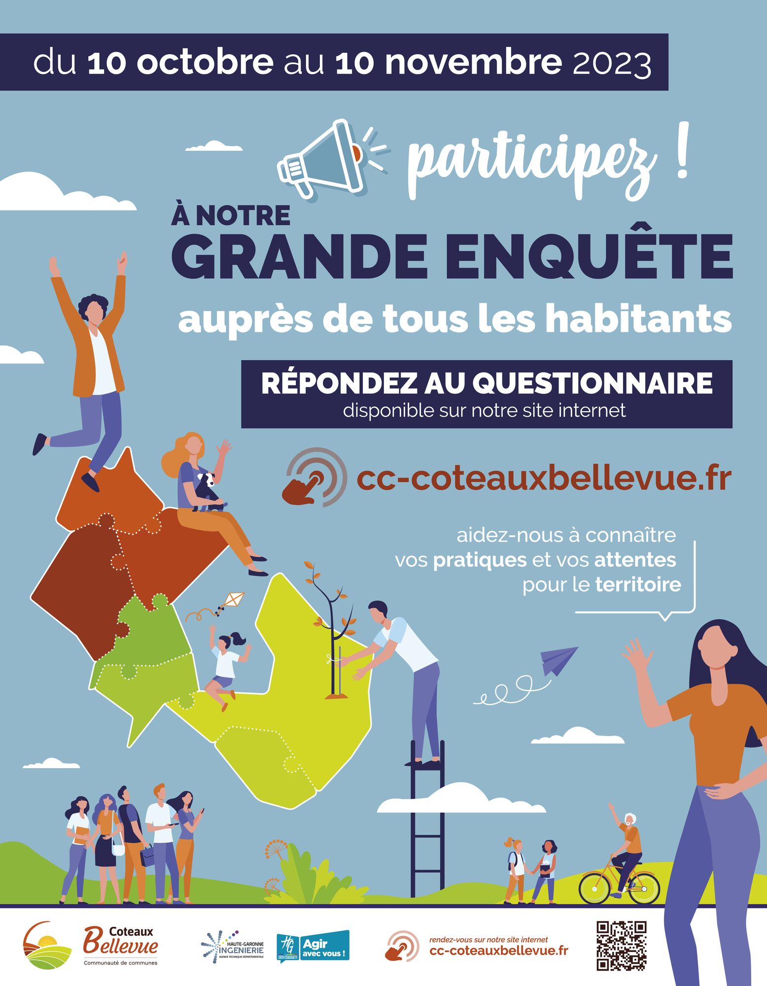 Du 10 octobre au 10 novembre 2023, les résidents des communes de Castelmaurou, Labastide Saint-Sernin, Montberon, Pechbonnieu, Rouffiac-Tolosan, Saint-Geniès Bellevue, Saint-Loup Cammas sont invités à répondre à un questionnaire sur leurs habitudes, leurs pratiques et leurs attentes pour préserver ou améliorer leur cadre de vie.